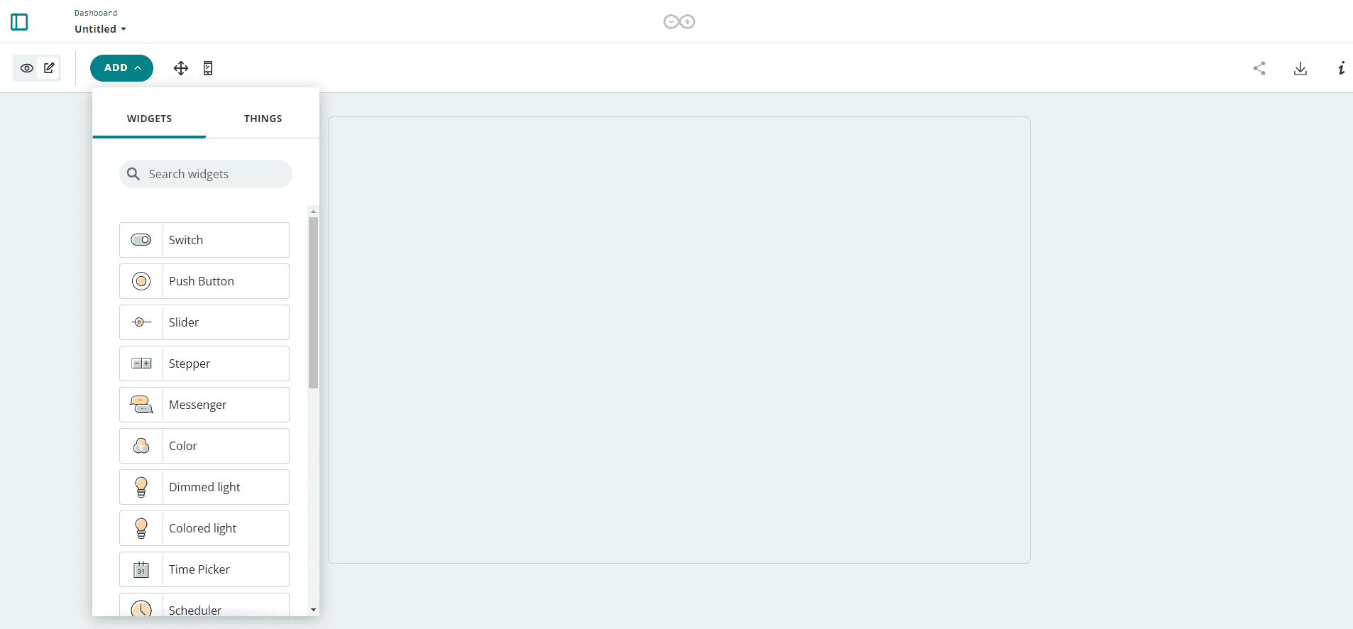 Dashboards are used to visualize real-time data and to enable direct interaction with the board through the Cloud. Go to