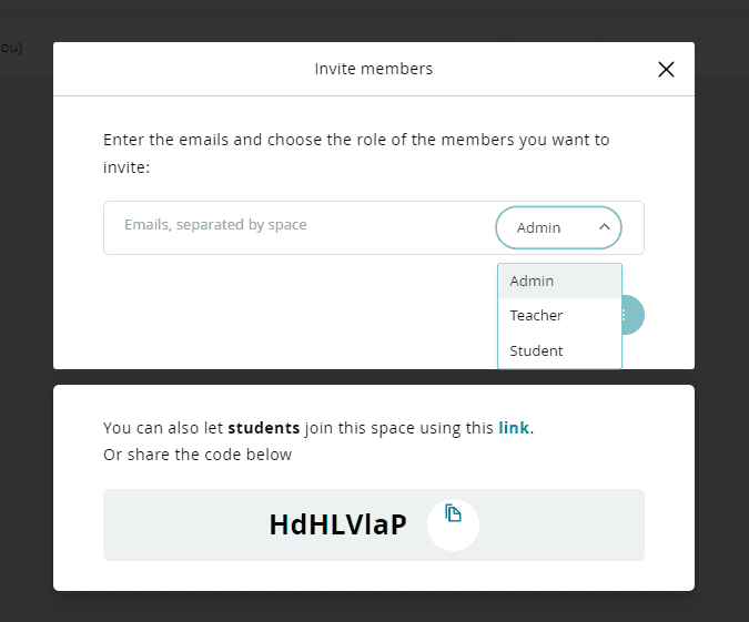 You can invite your students to the Space through Code invitation (check Join Space explained above).