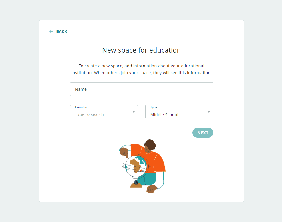 Join Space. Here you copy and paste the space code that another admin or teacher shared with you to join their space. See image below: