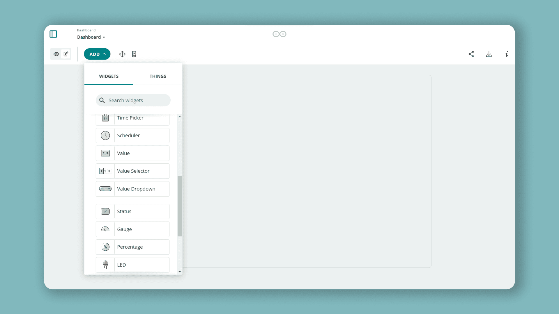 Our widget will now appear in the dashboard. Next, let's add a Switch widget, following the same process to link it to the boolean_sync variable inside Thing Number One. After adding it, we will have two widgets: a gauge and a switch.