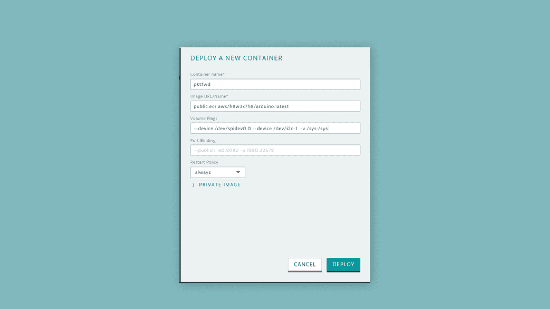 - Image URL: public.ecr.aws/h8w3x7h8/arduino:latest