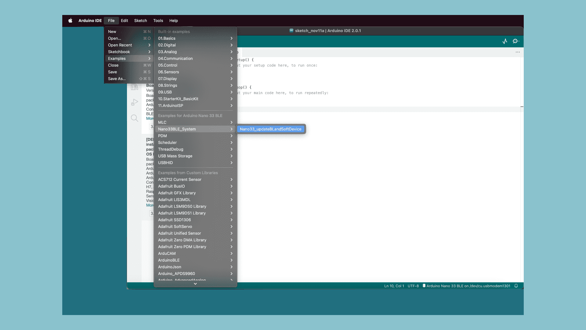 File > Examples > Nano33BLE_System > Nano33_updateBLandSoftDevice