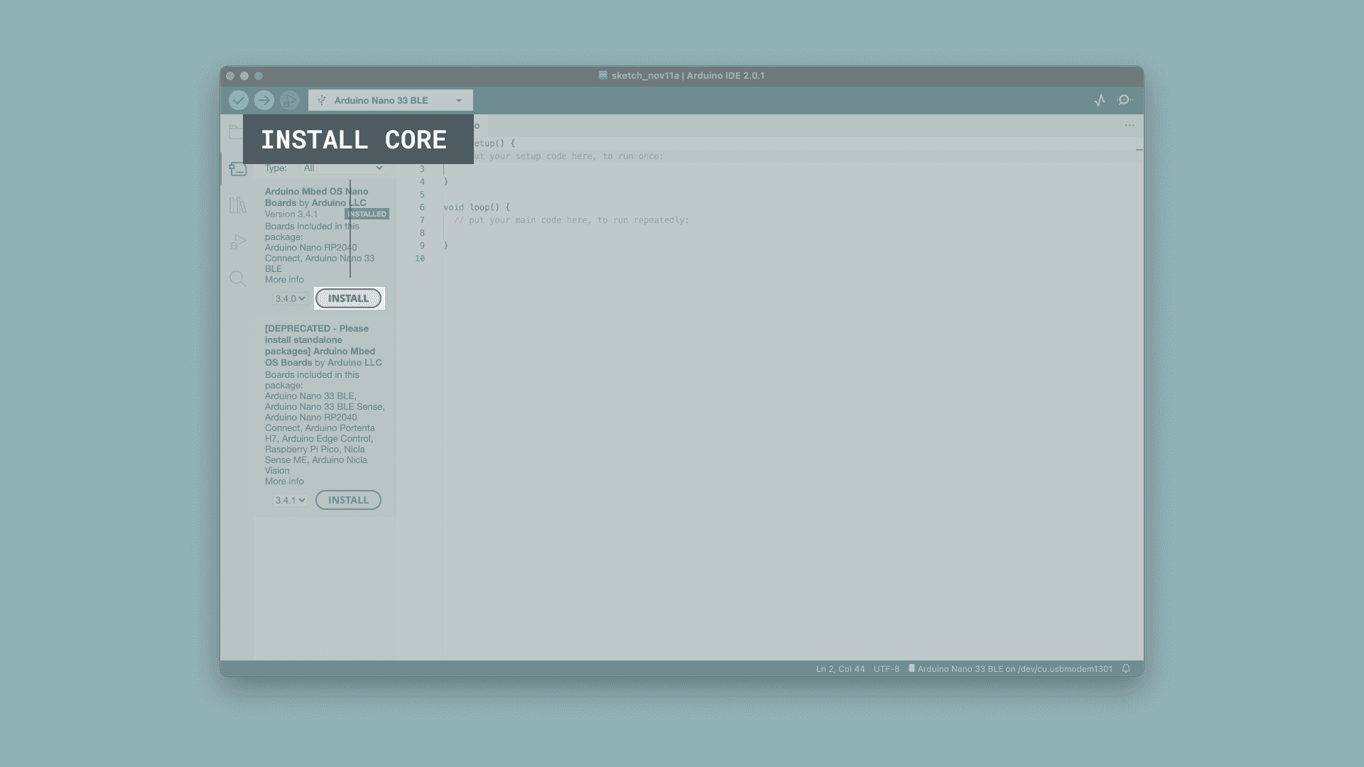 This is not only needed to upload the next sketch, but you're also going to dive into the core files themselves to find a specific tool in an upcoming step.