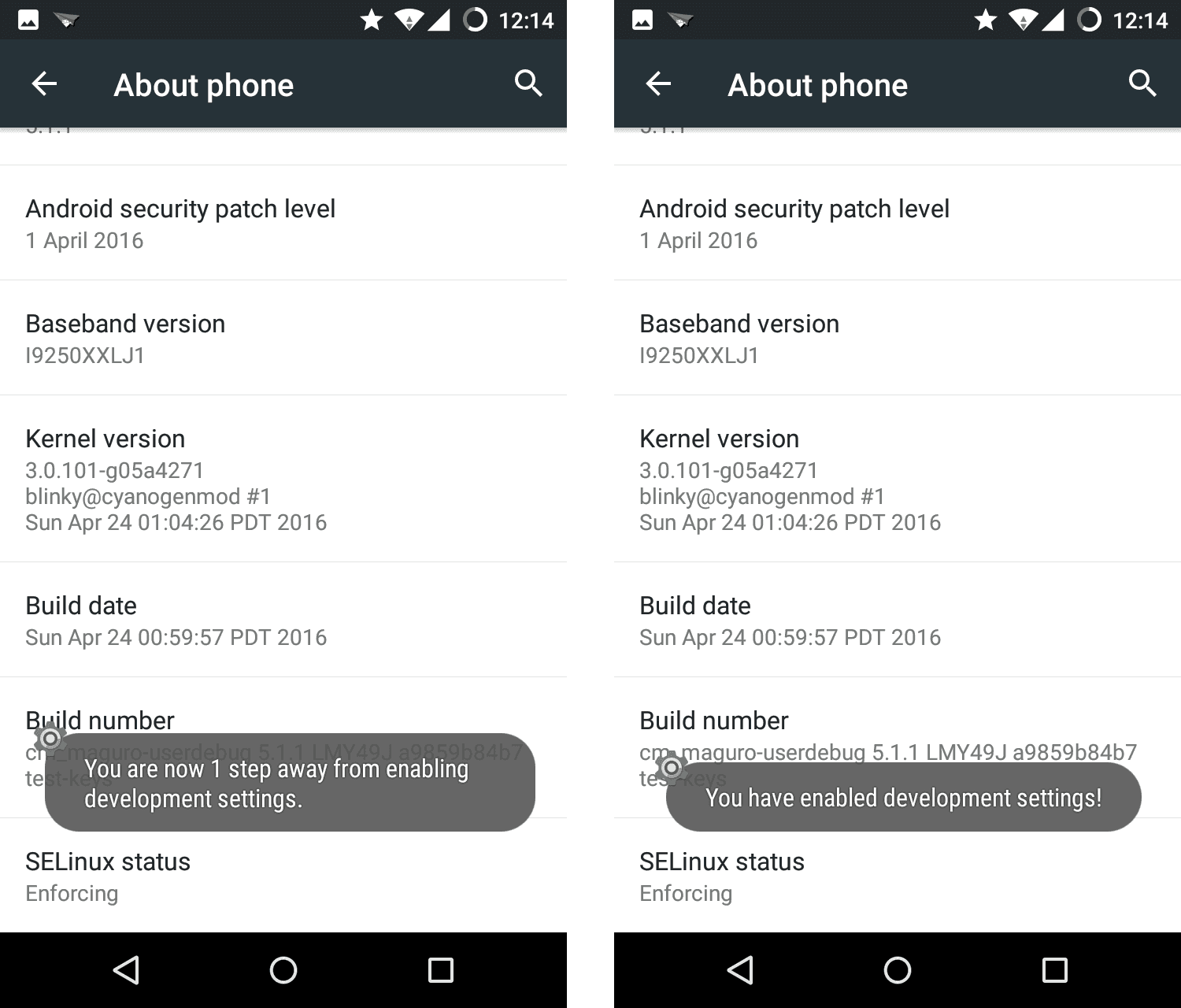 Figure 6: Tap repeatedly on Build number