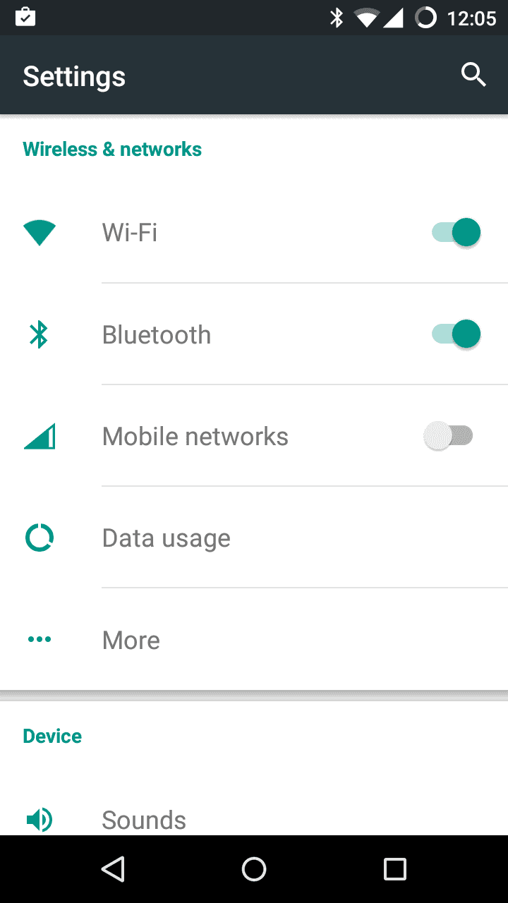 To work with real devices you first need to enable them as development devices, the procedure for enabling a device may vary from one vendor to another. The following instructions are applicable to stock Android™ devices such as the Nexus 5.
