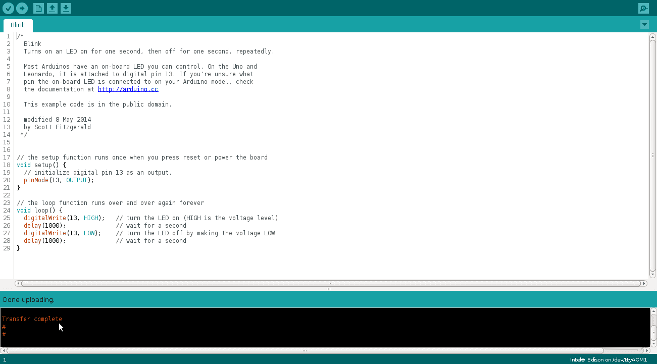 In this guide it is assumed that you are using theIntel® Edison kit for Arduino, but the same explanation is valid for the Intel® Edison Breakout Board. It is also assumed that you have connected the Intel® Edison to the Breakout Board. If not please make reference to the Intel® Tutorial about how to do that.