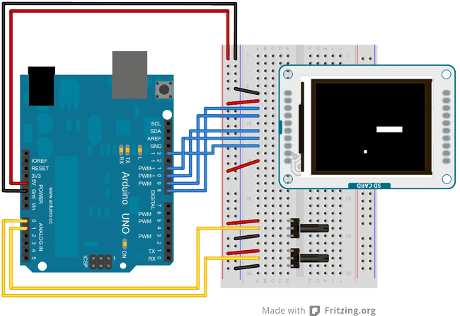 This sketch is a basic implementation of pong for the TFT screen with an Arduino Uno.