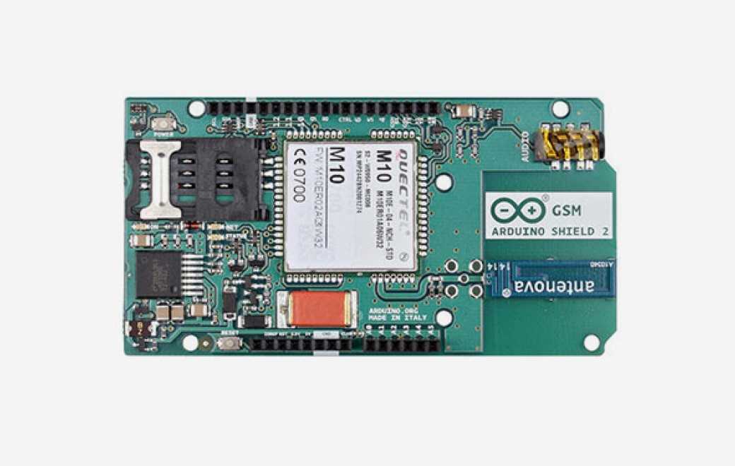 The Arduino GSM Shield 2 allows an Arduino board to connect to the internet, make/receive voice calls and send/receive SMS messages. The shield uses a radio modem M10 by Quectel. It is possible to communicate with the board using AT commands. The GSM library has a large number of methods for communication with the shield.