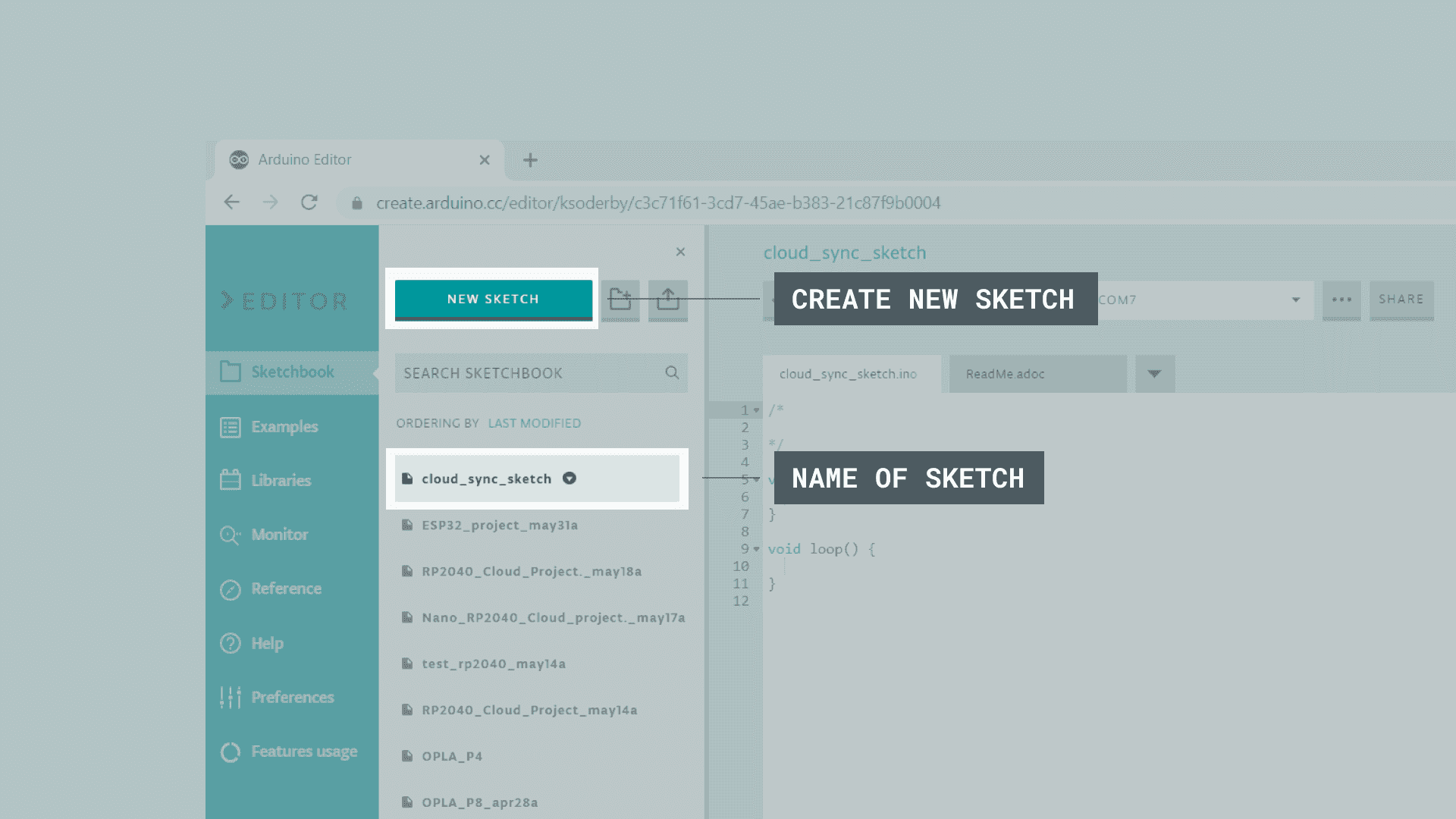 • Create an Arduino Sketch in the Arduino Cloud.