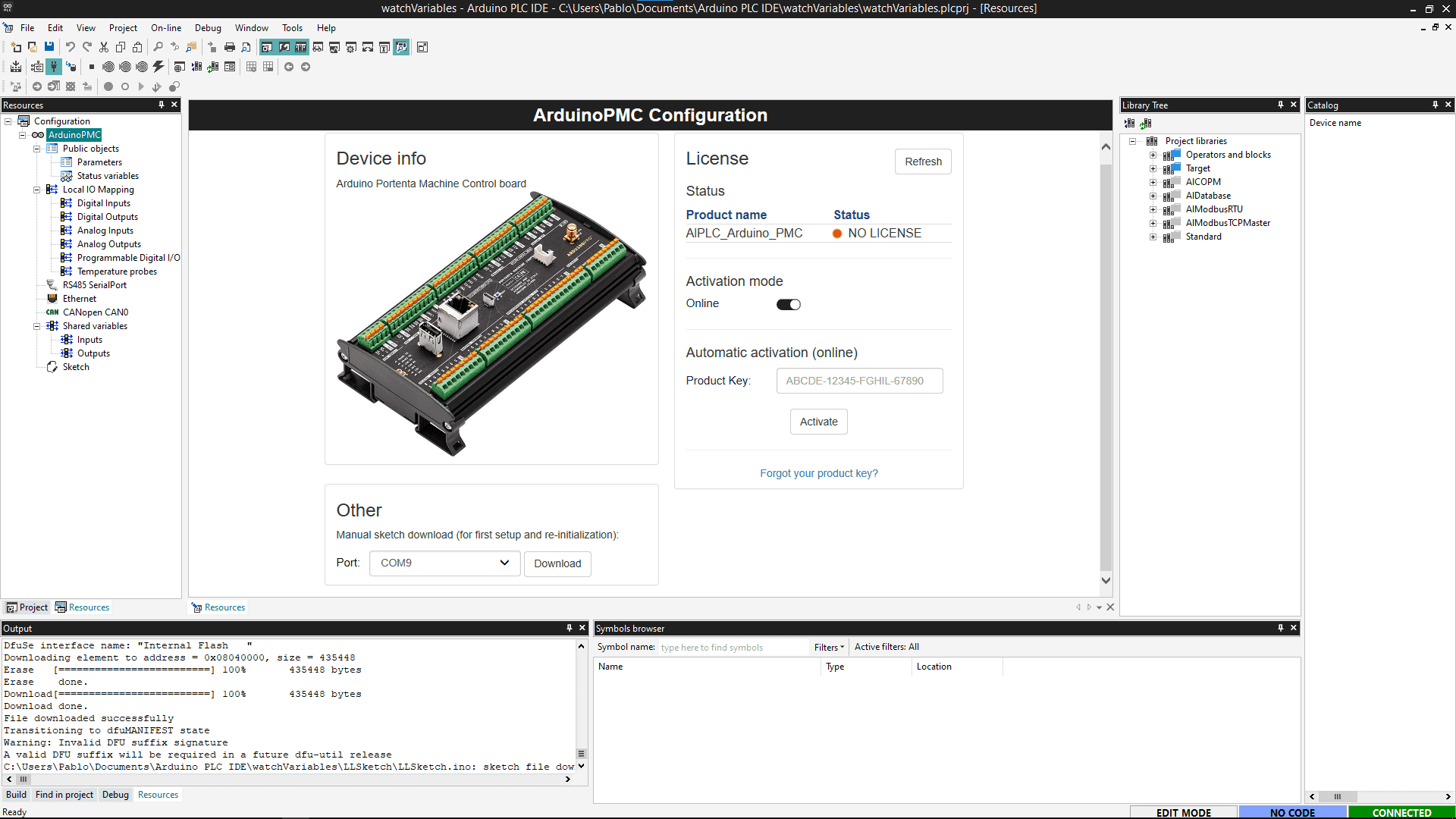 - If you have a Portenta Machine Control, you will need a unique PLC IDE License key for your device. Get your license key here.