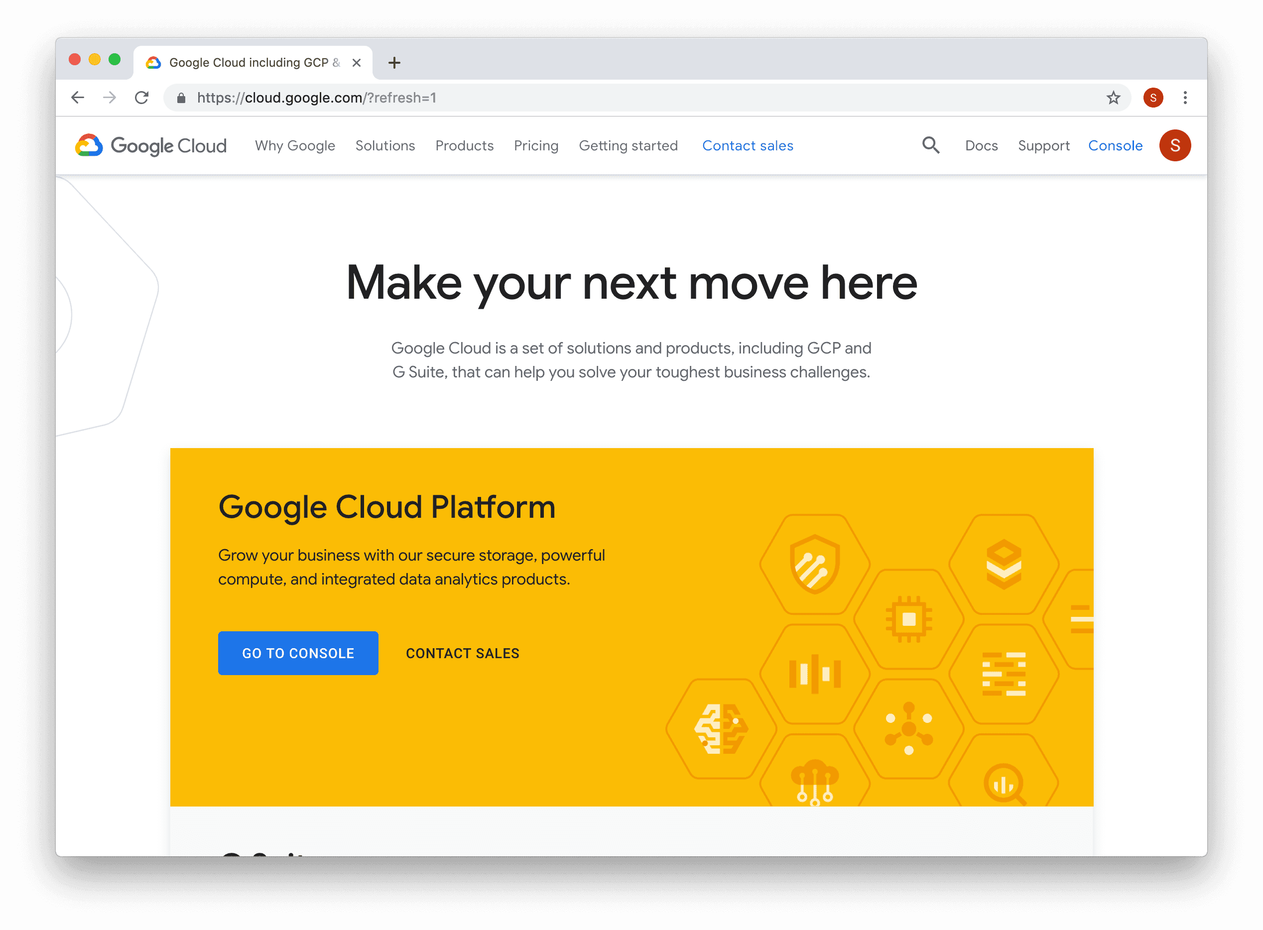 Open a web browser and go to https://cloud.google.com/ and click the "Sign In" link to login with your Google ID.