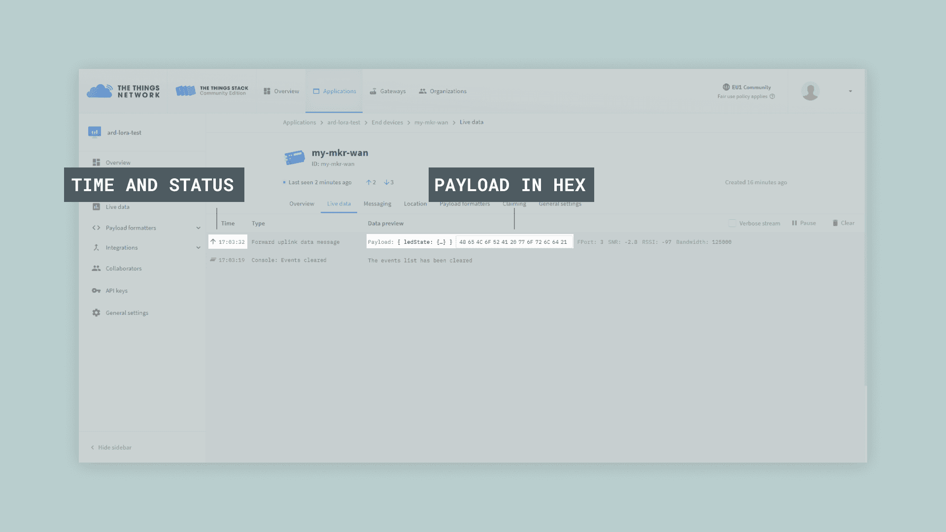 This means we have successfully been able to both connect, and send a payload to TTN.