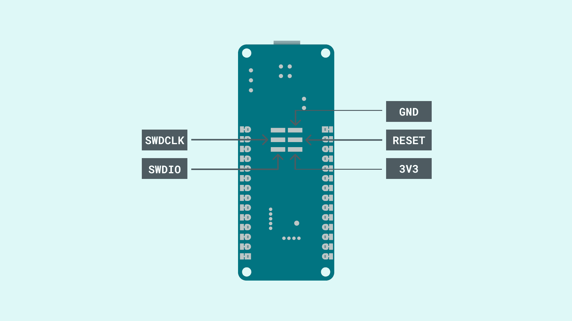 There are several methods to connect the J2 header pins of the MKR WiFi 1010 board to the SWD interface of the Atmel-ICE development tool. For example, one method can be soldering wires directly on the exposed pads; in this tutorial, we are going to explain how to set up two different methods: one that requires soldering and one that doesn't.