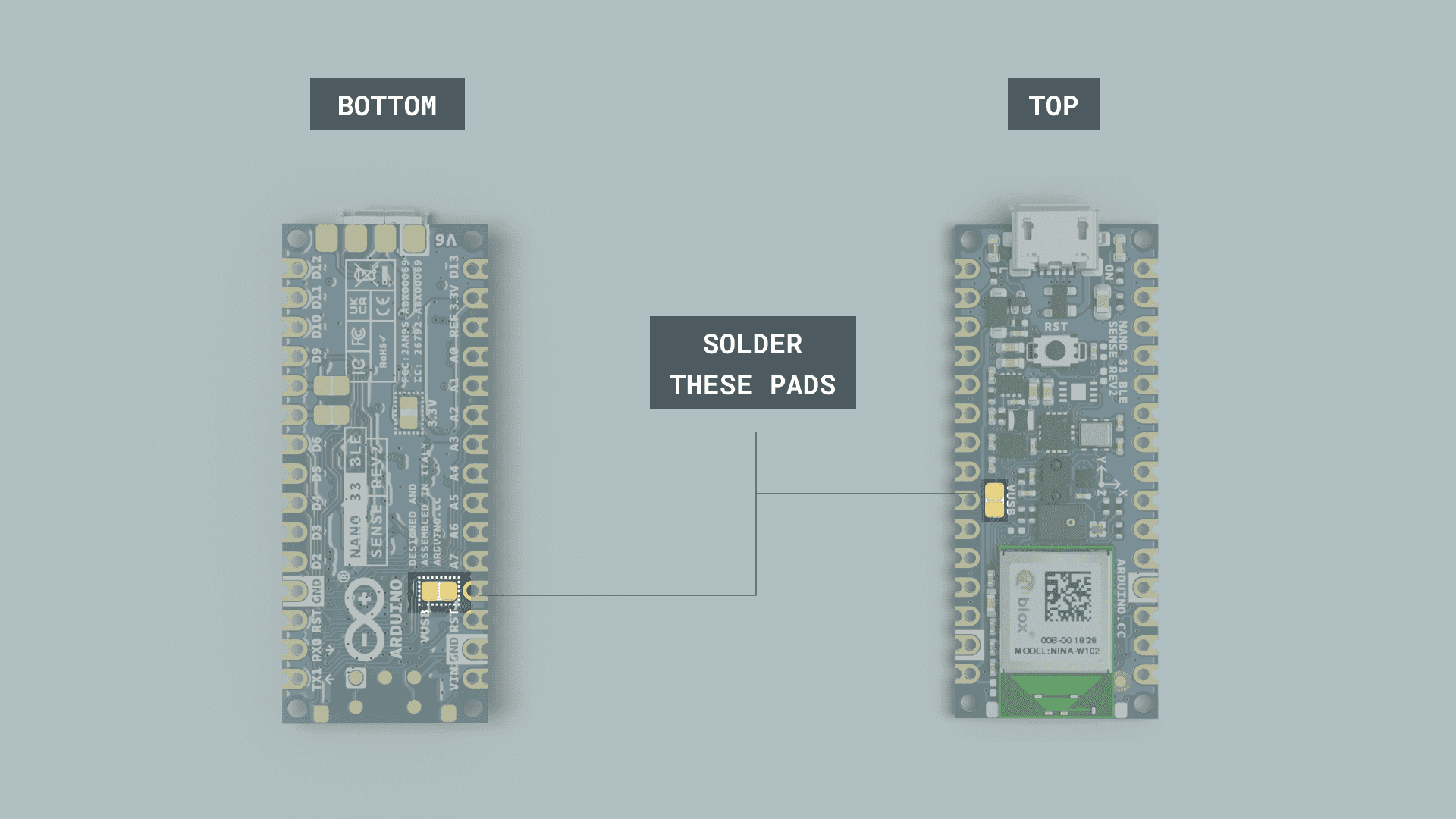 Soldering the VUSB pins.