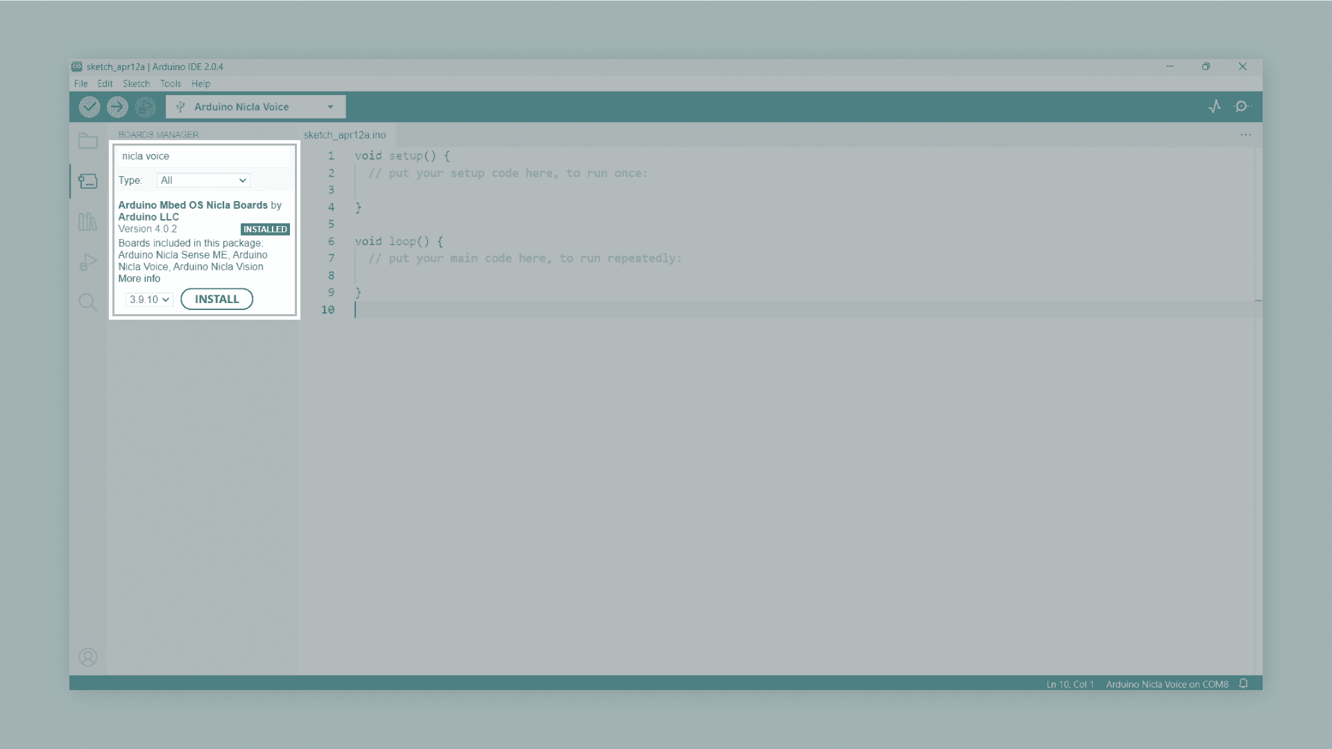Installing the Arduino Mbed OS Nicla Boards core in the Arduino IDE bootloader