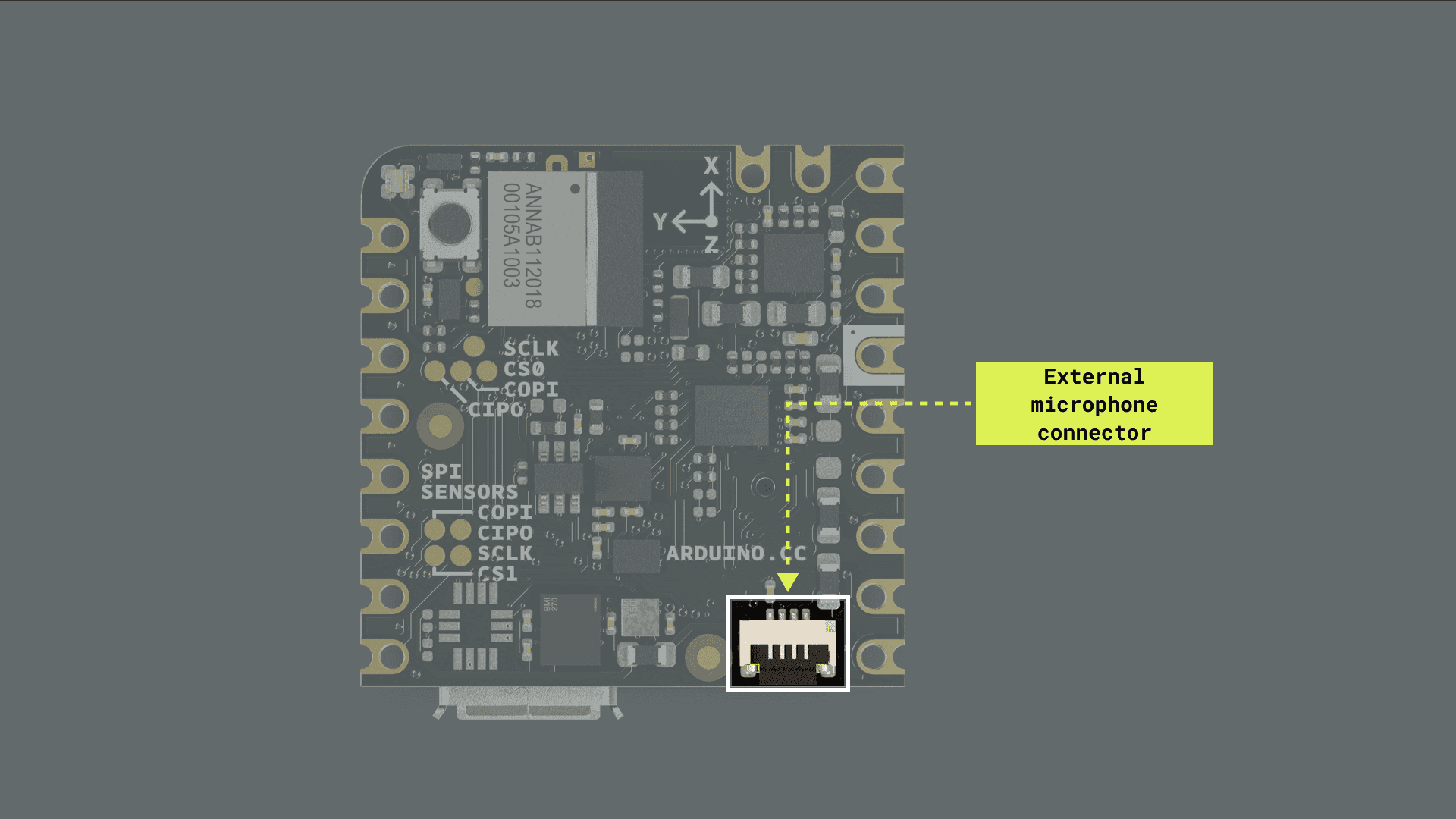 The Nicla Voice main components (bottom view)