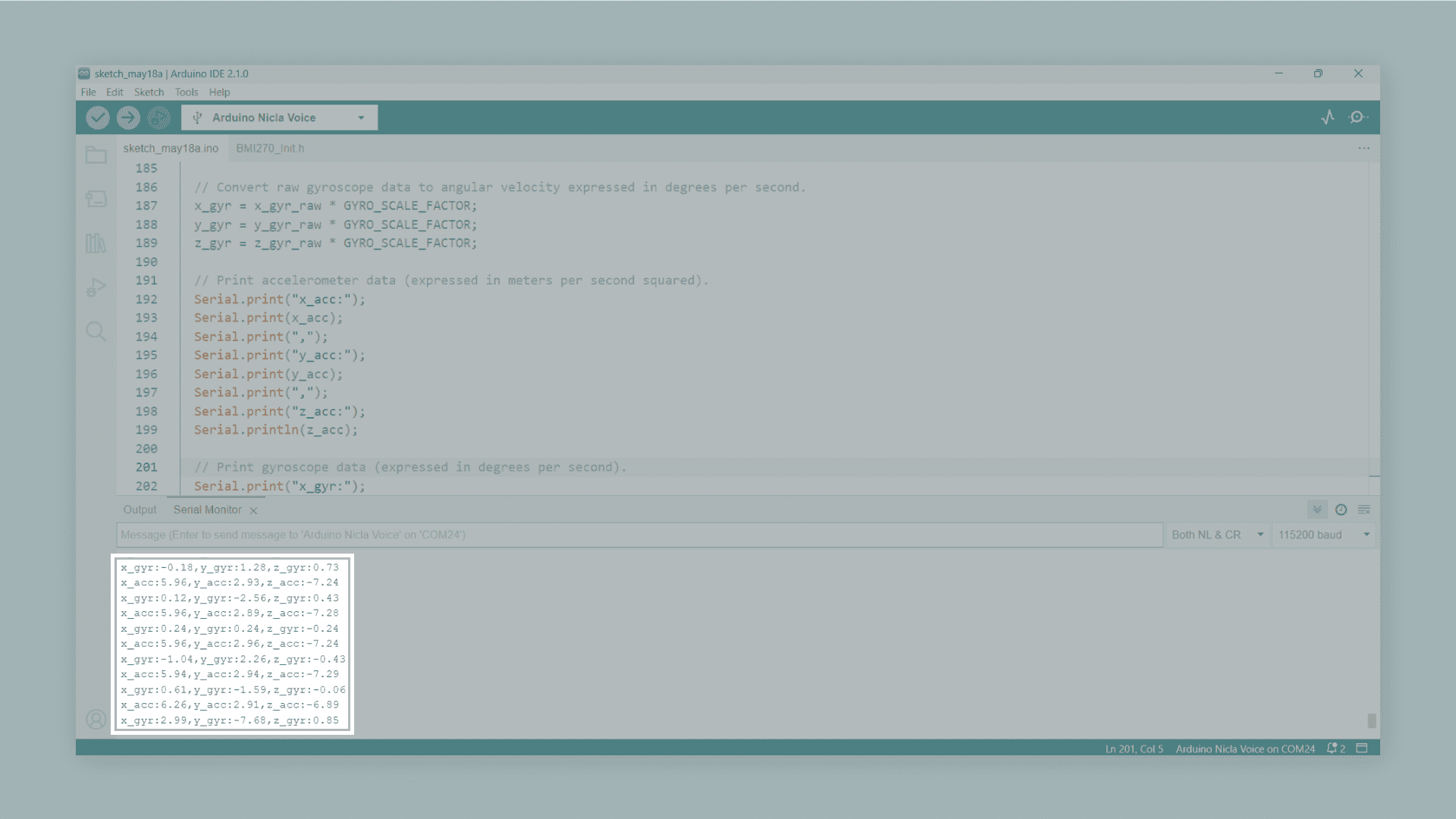24 // Initialize the Nicla system and the built-in RGB LED