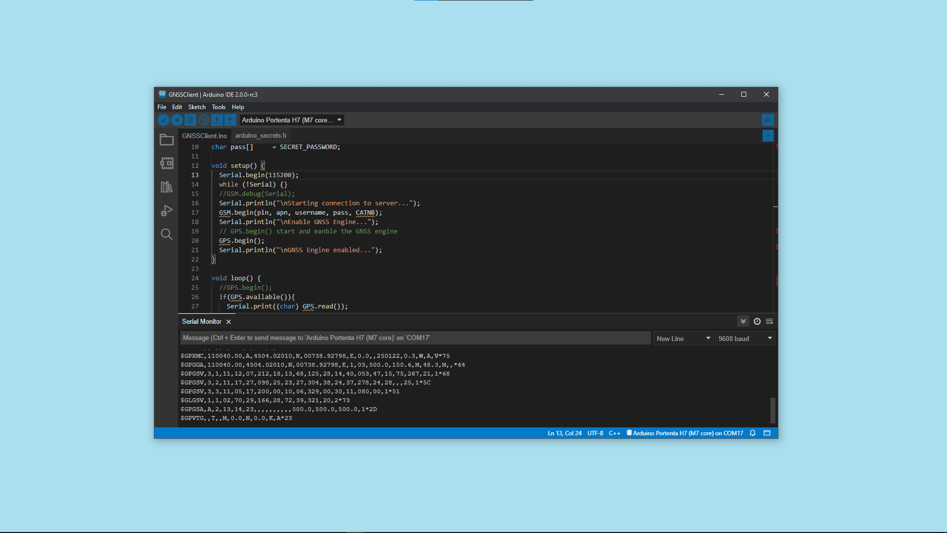 Open the example by going to Examples > GSM > GNSSClient.