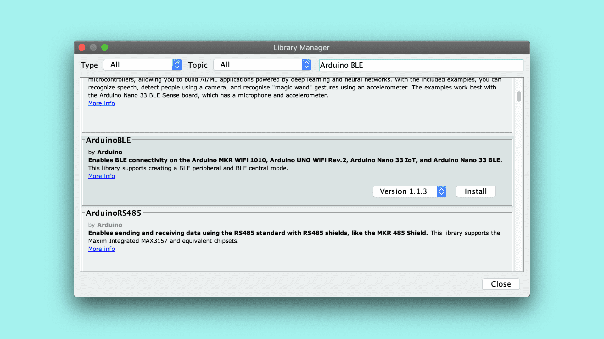 Download the Bluetooth® Low Energy library in the Library Manager.