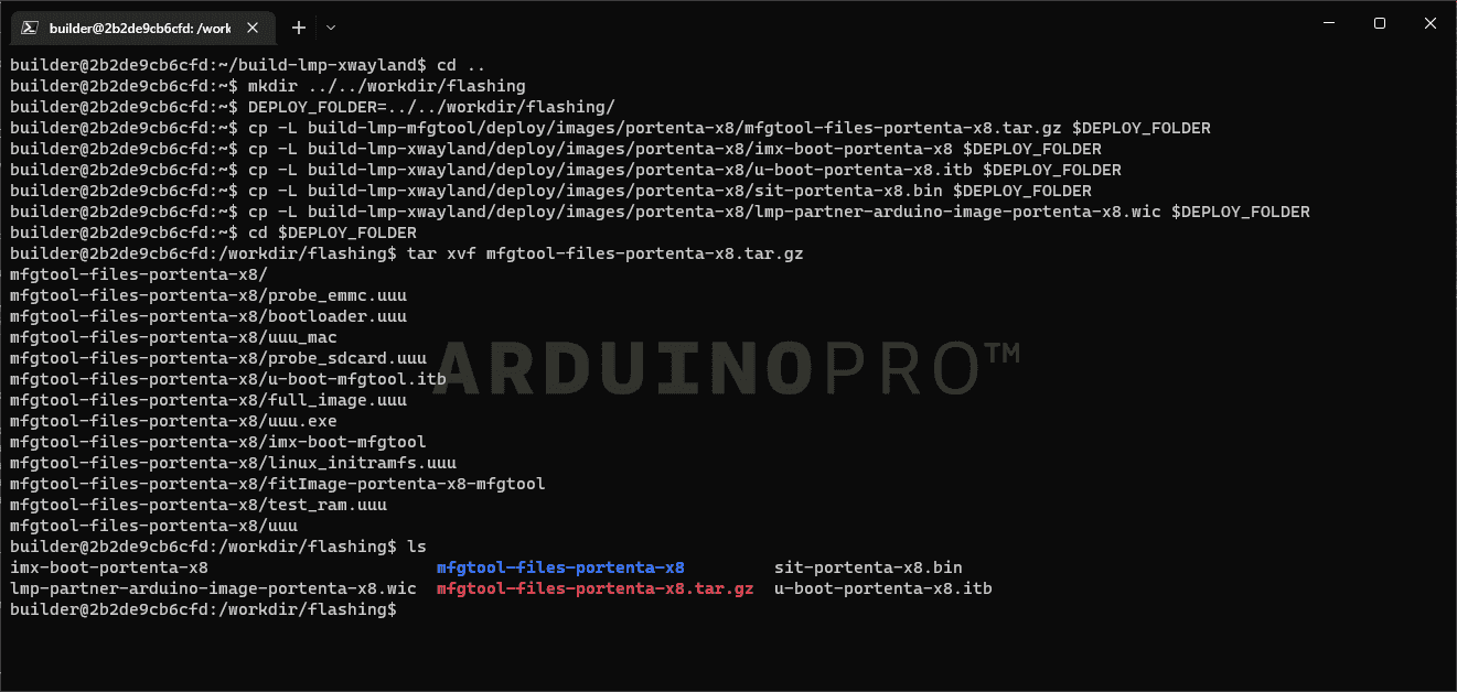 11cd $DEPLOY_FOLDER12tar xvf mfgtool-files-portenta-x8.tar.gz