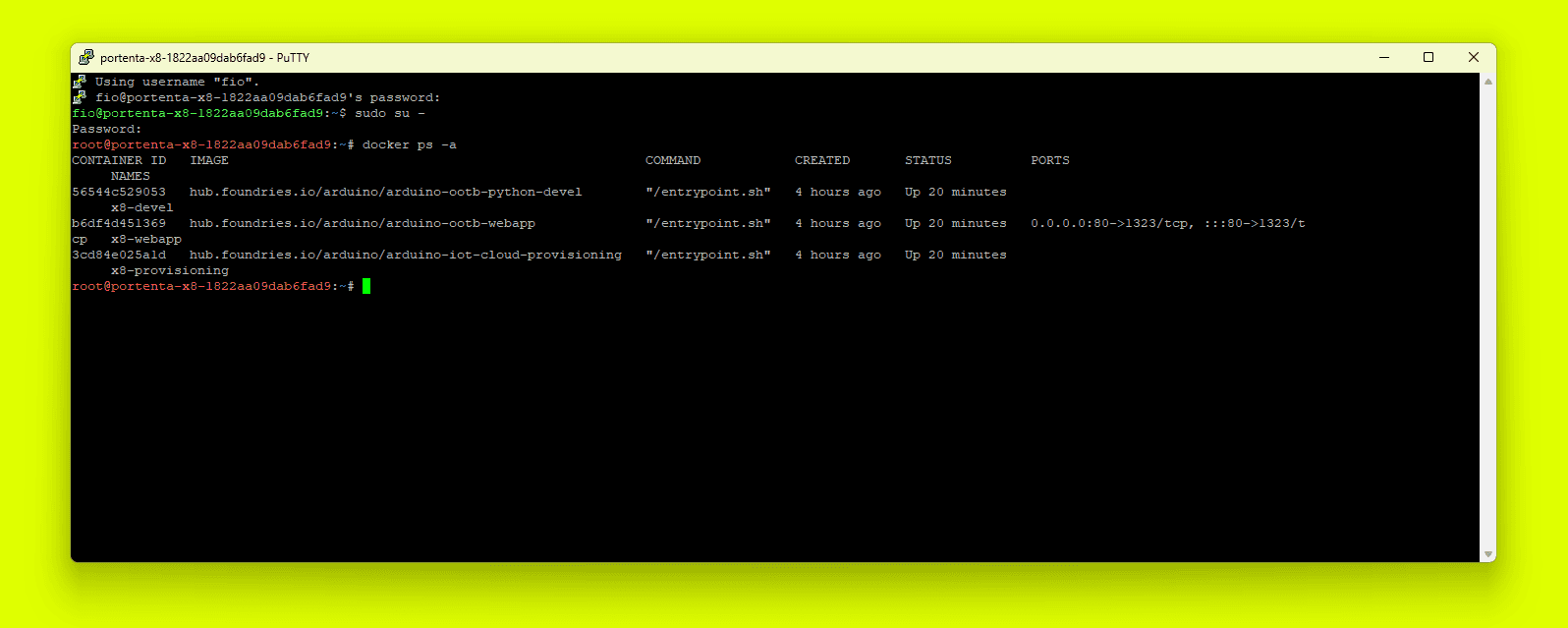 At this point, it is worth mentioning that Portenta X8 containers are based on Docker. Docker is an open-source software platform, developed by the company with the same name, which allows you to create, test and distribute containerized applications. The goal of Docker is therefore to facilitate the creation and management of containers, in order to distribute the resources required for an application in any environment, always keeping the executed code under control. Docker containers can run everywhere, in on-premises data centers or in public and private Clouds. Thanks to the virtualization at the operating system level, typical of this technology, Docker allows you to natively create containers in Linux environments.