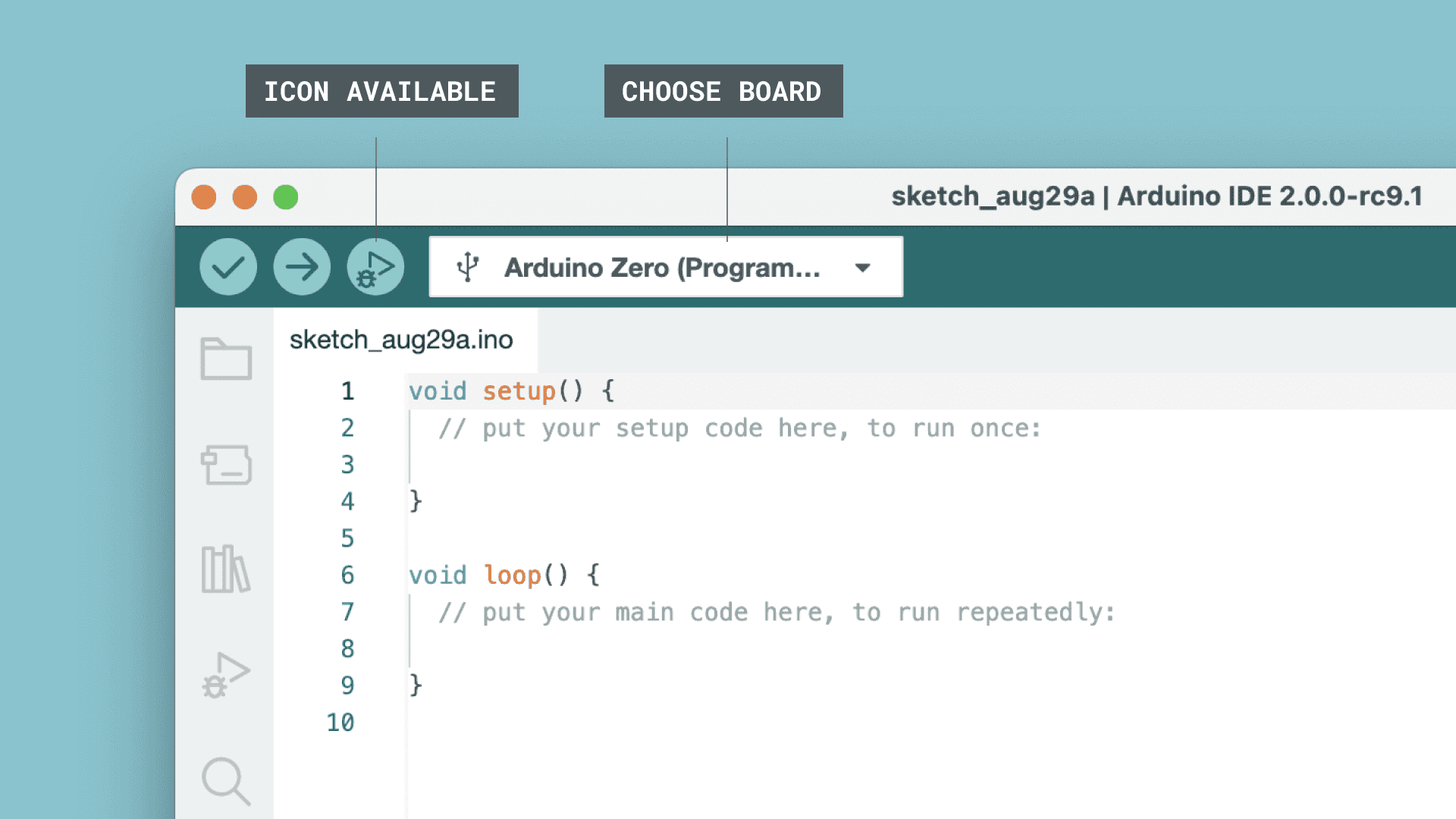 4. Your Arduino Zero is now ready to be debugged using the Arduino IDE 2.